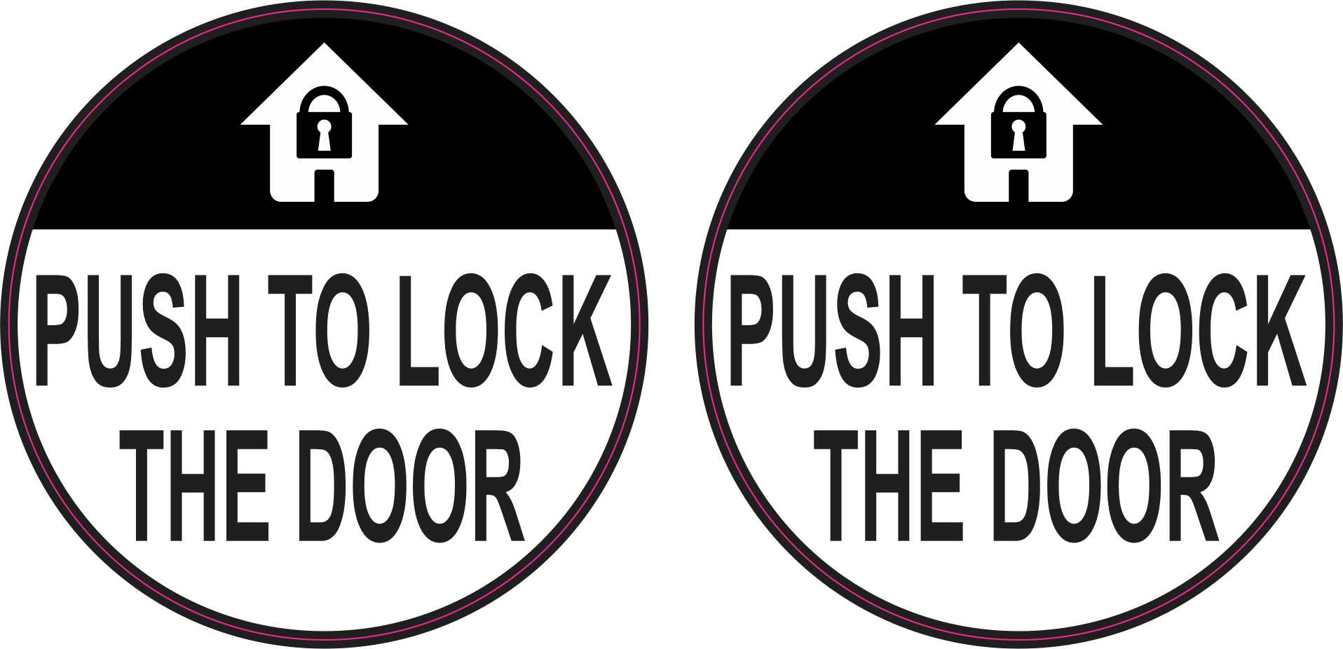 3in x 3in (76.2mm x 76.2mm) Push to Lock the Door Vinyl Sticker