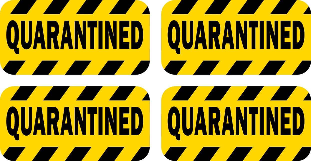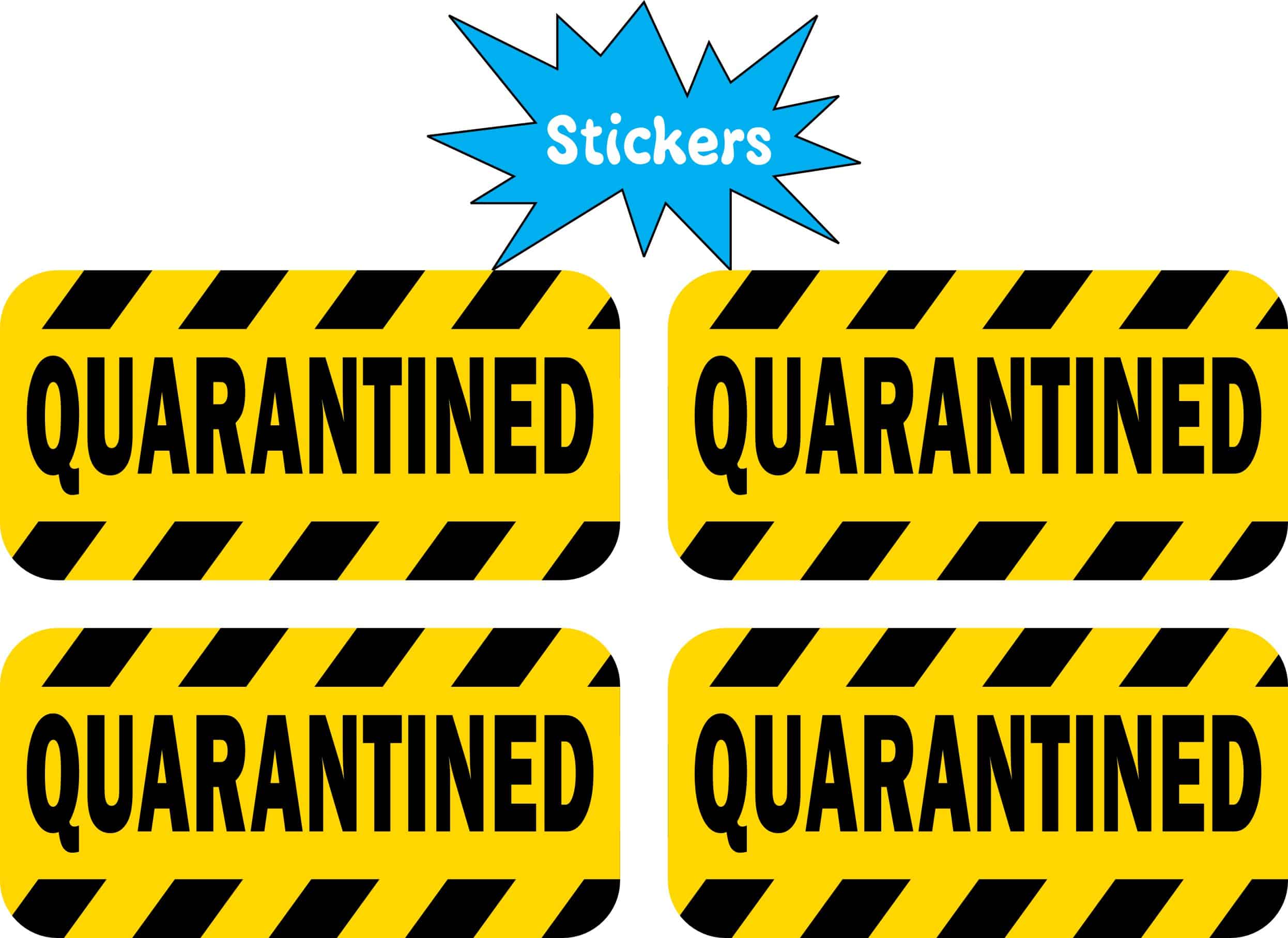 This product contains four stickers.  Each sticker is 2 inches wide by 1 inch tall when applied and features the word, QUARANTINED, in black letters on a yellow background.  Black, diagonal stripes accent the top and bottom borders of each sticker.  These carefully crafted products are durable and easily visible, making them ideal for use in a variety of settings and scenarios!