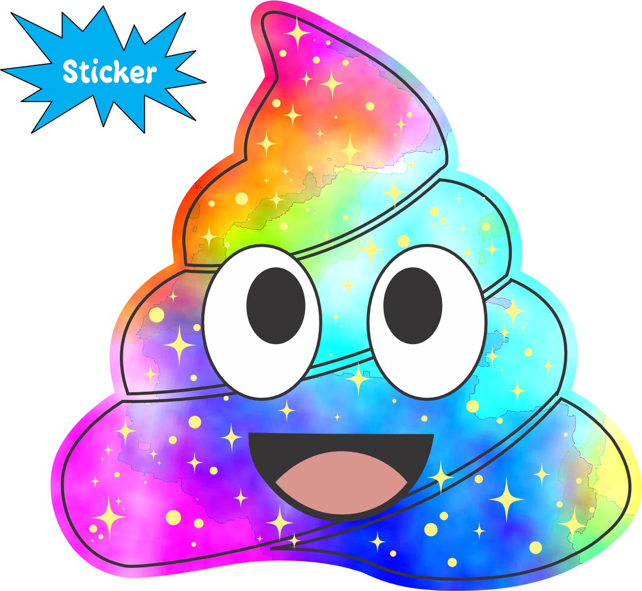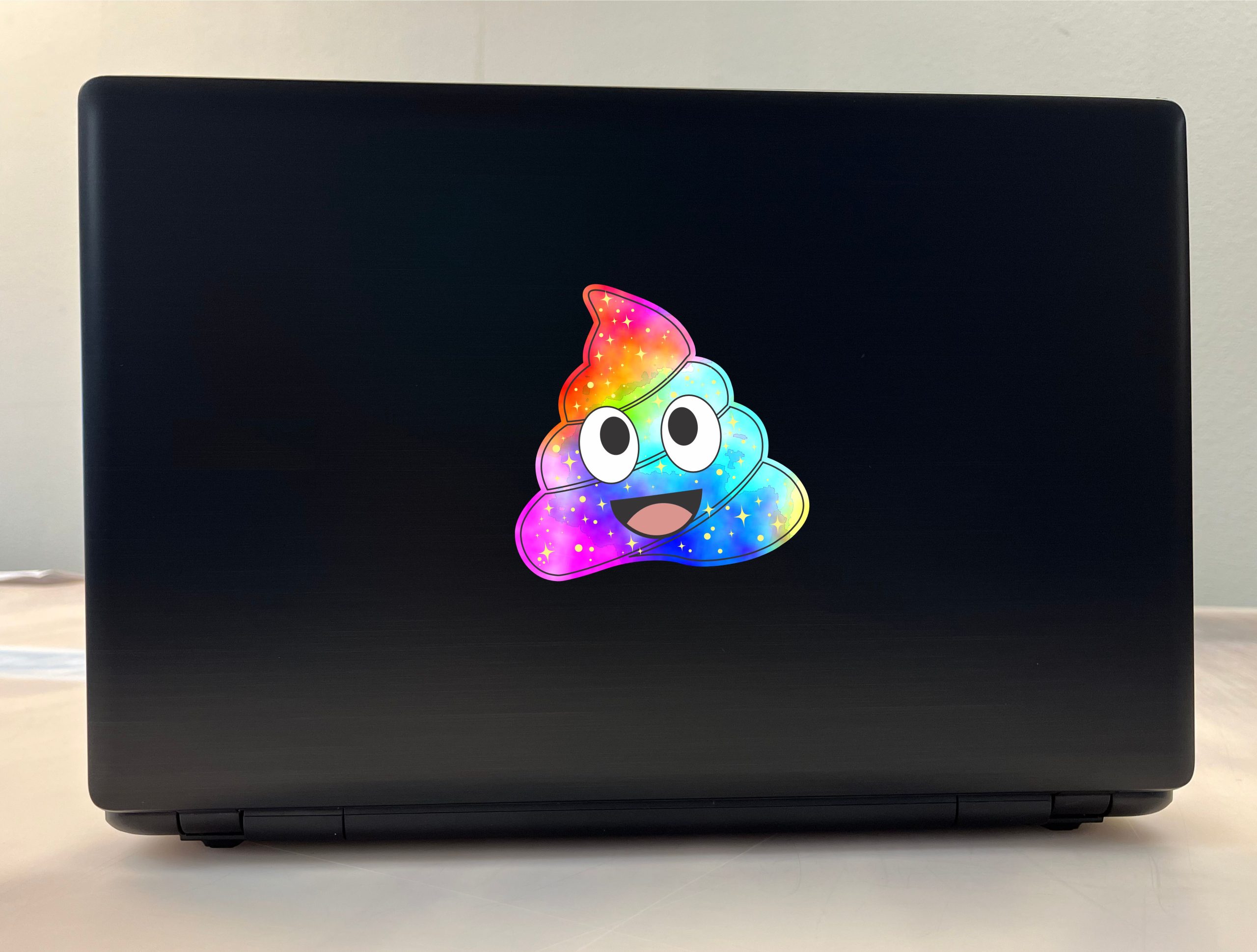 4 inches by 4 inches (101.6 mm x 101.6 mm) Rainbow Smiling Poop Emoji Vinyl Sticker
