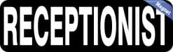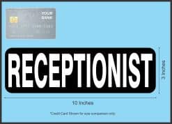 This magnet is 10 inches wide by 3 inches tall when applied. It features the word, RECEPTIONIST, in white letters on a black background. This carefully crafted product is durable and easily visible, making it ideal for display in any office! However, it only attracts ferromagnetic metals.