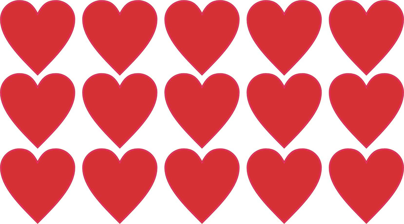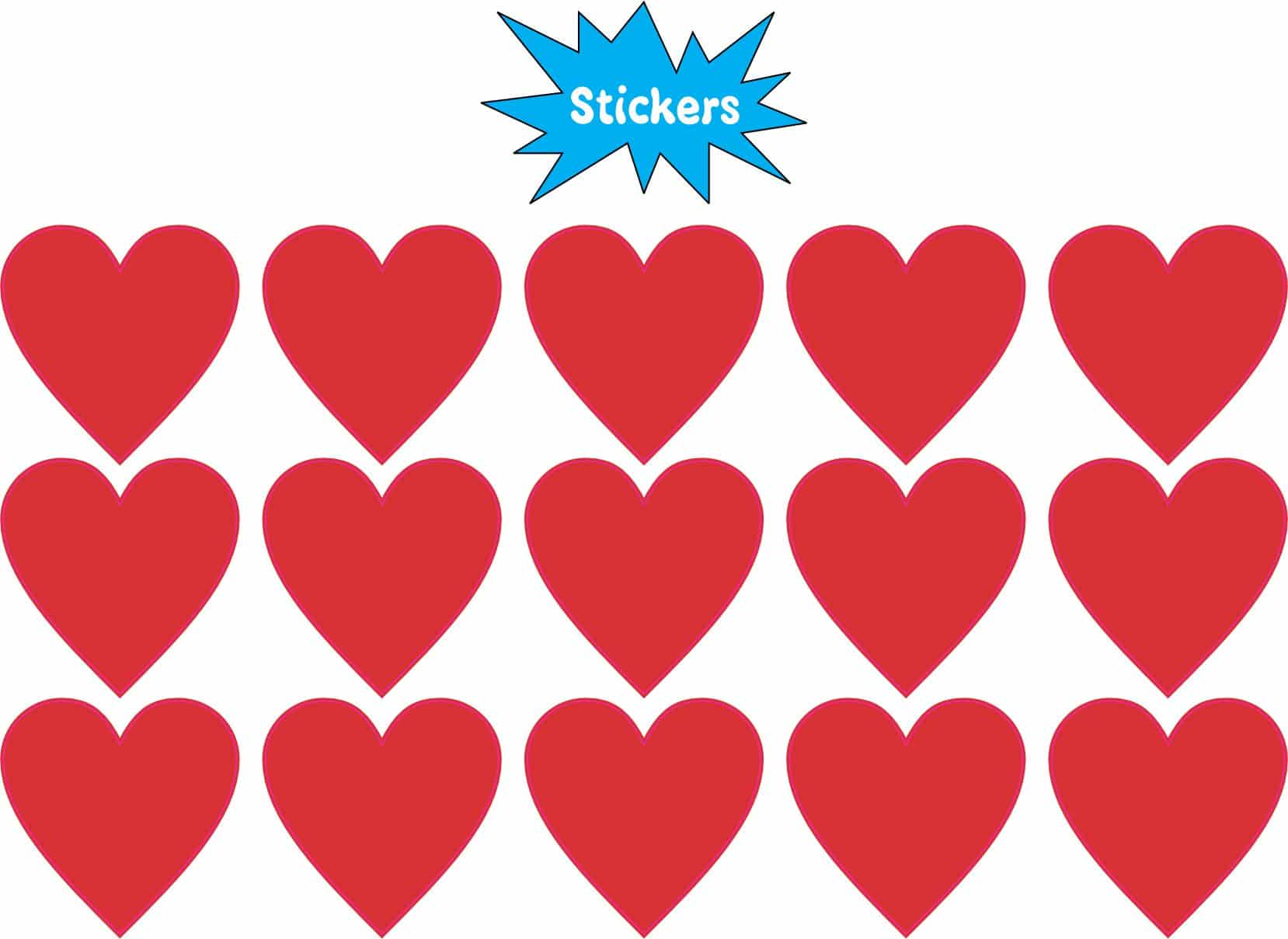 This is 1 sheet of 15 stickers. Each sticker measures 1 inch wide and 1 inch tall. These stickers are cute small red hearts. You will love adding personality to your stuff with these adorable stickers. They can be applied to any flat smooth surface. The pink line indicates where the stickers will be cut and will not be printed on the final product.