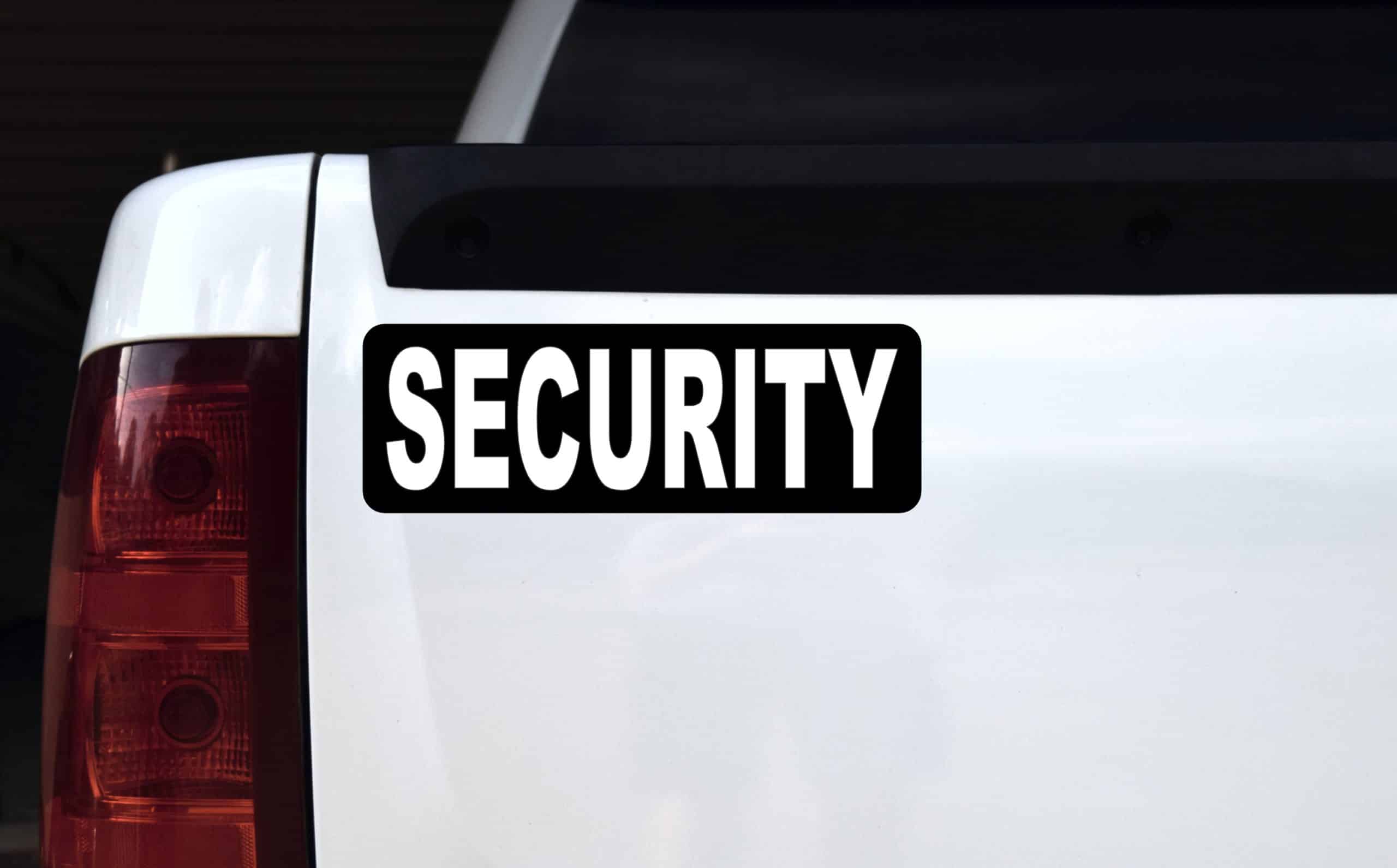 This security magnet measures 12 inches wide by 4 inches tall. Featuring bold white “SECURITY” text on a sleek black background, this professional magnetic sign is perfect for security personnel, businesses, and organizations needing clear identification. Ideal for security vehicles, office doors, equipment, or any magnetic surface where professional security identification is needed.