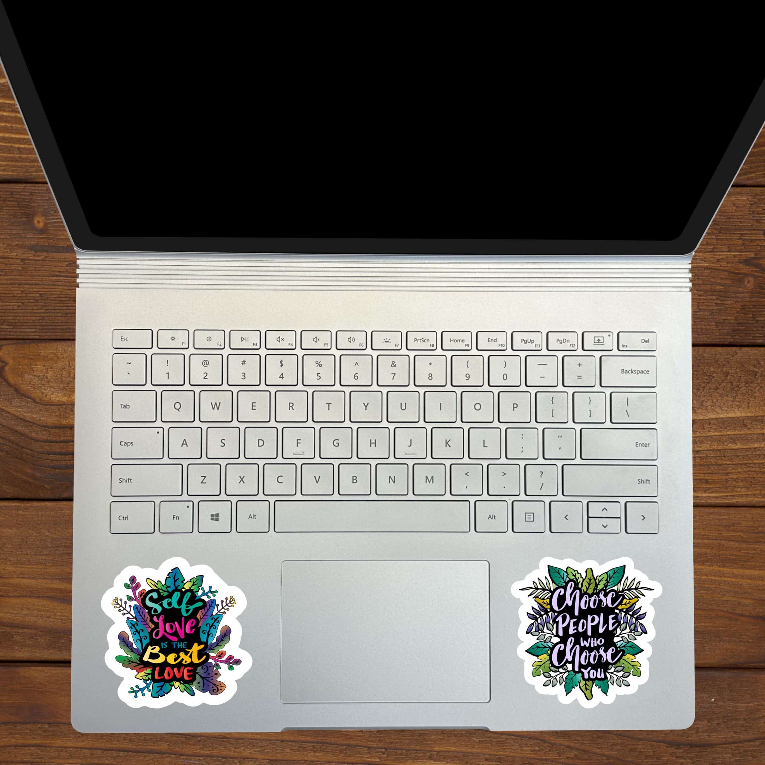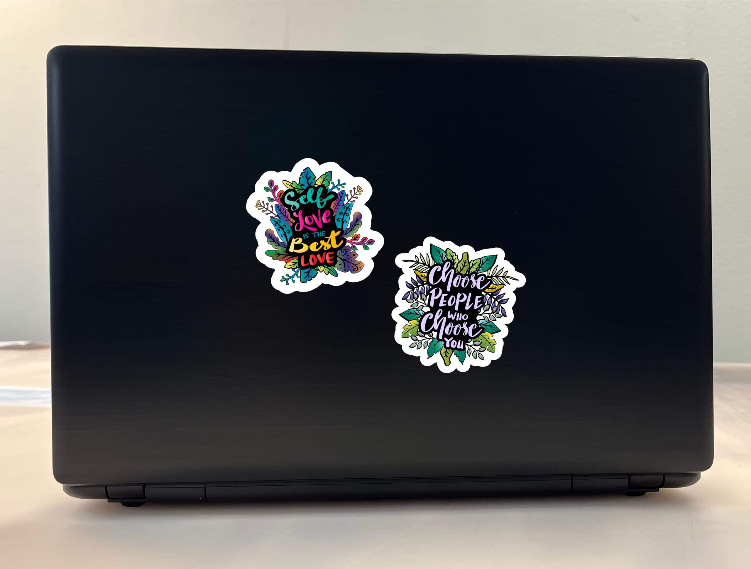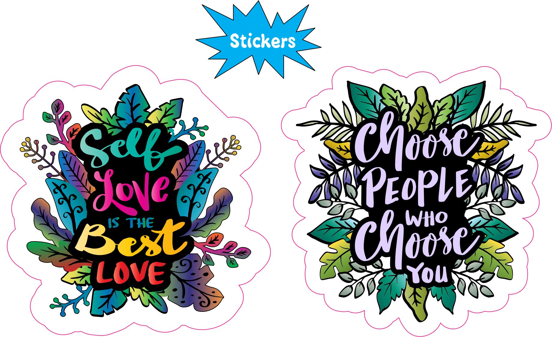 3 inches by 3 inches (76.2 mm x 76.2 mm) Self Love is Best and Choose You Vinyl Stickers