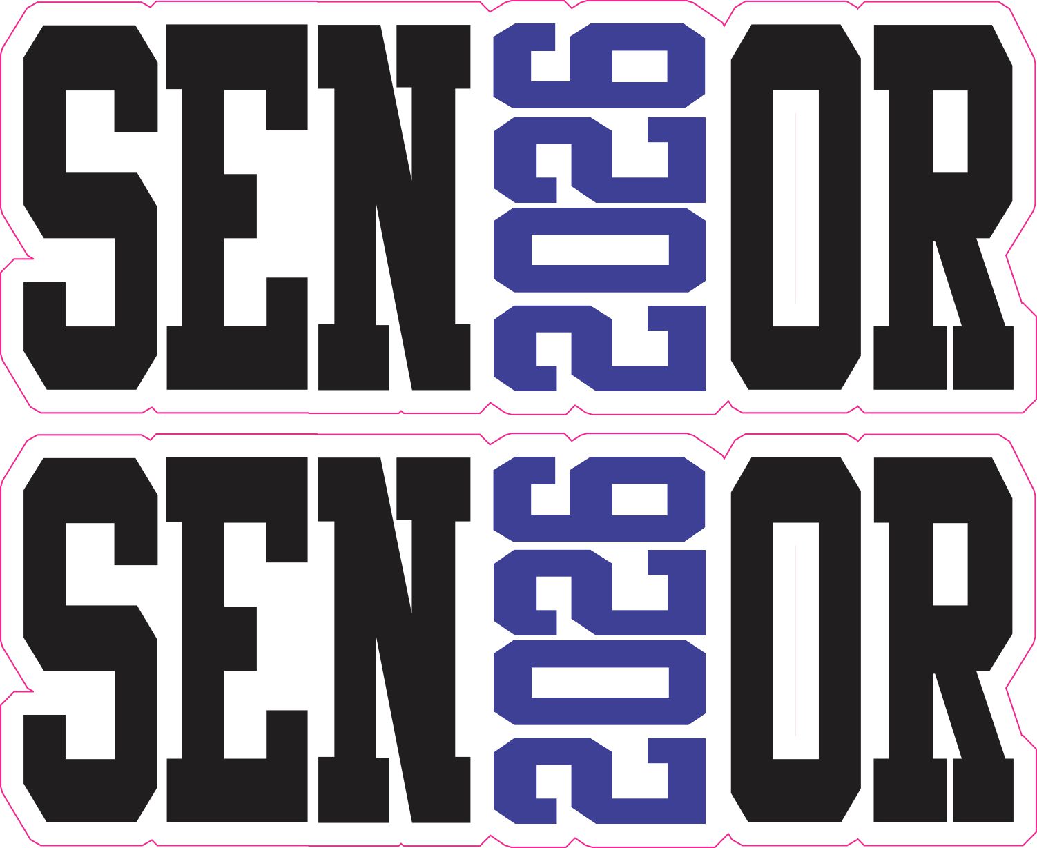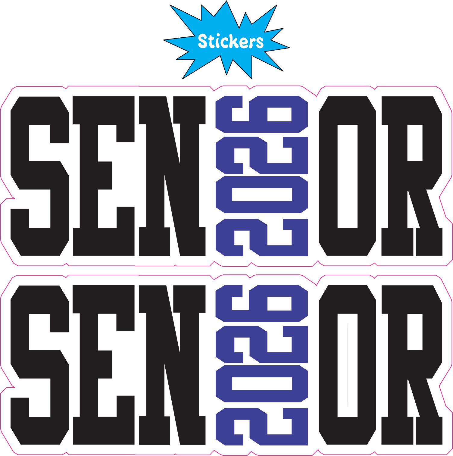 This is 1 sheet of 2 stickers. Each sticker measures 5 inches wide by 2 inches tall. Each one has the word Senior with a white border. The I in Senior has been replaced with the year 2026. This is an awesome sticker to show pride in making it to your final year in High School or College. Proudly display these on your laptop, coffee mug or even your vehicle. The pink line indicates where the stickers will be cut and will not be printed on the final product.