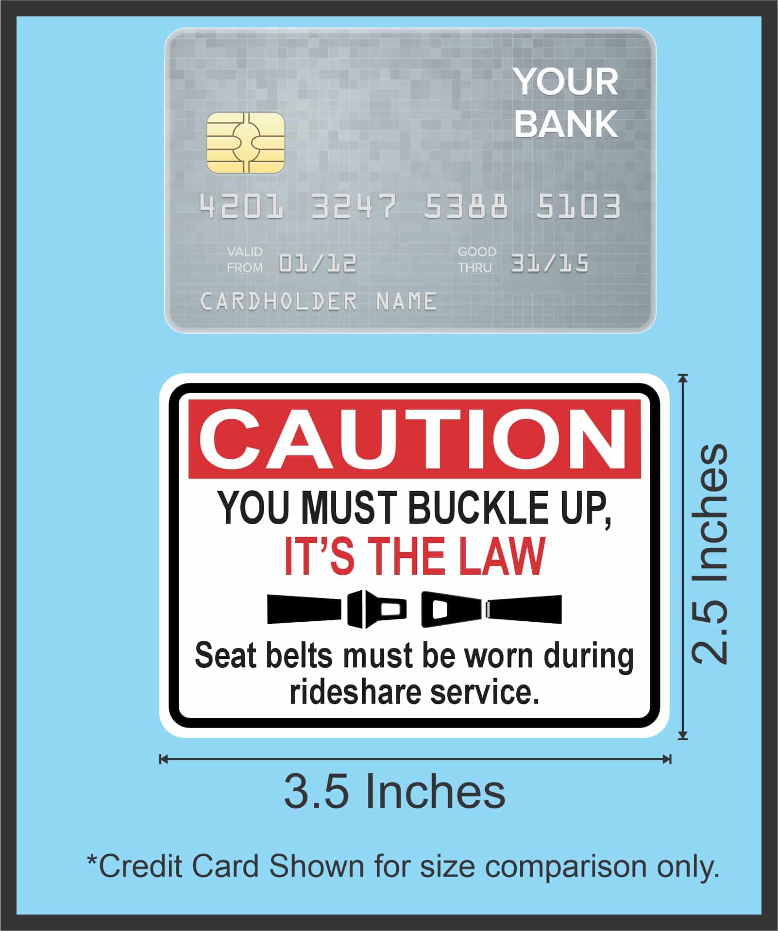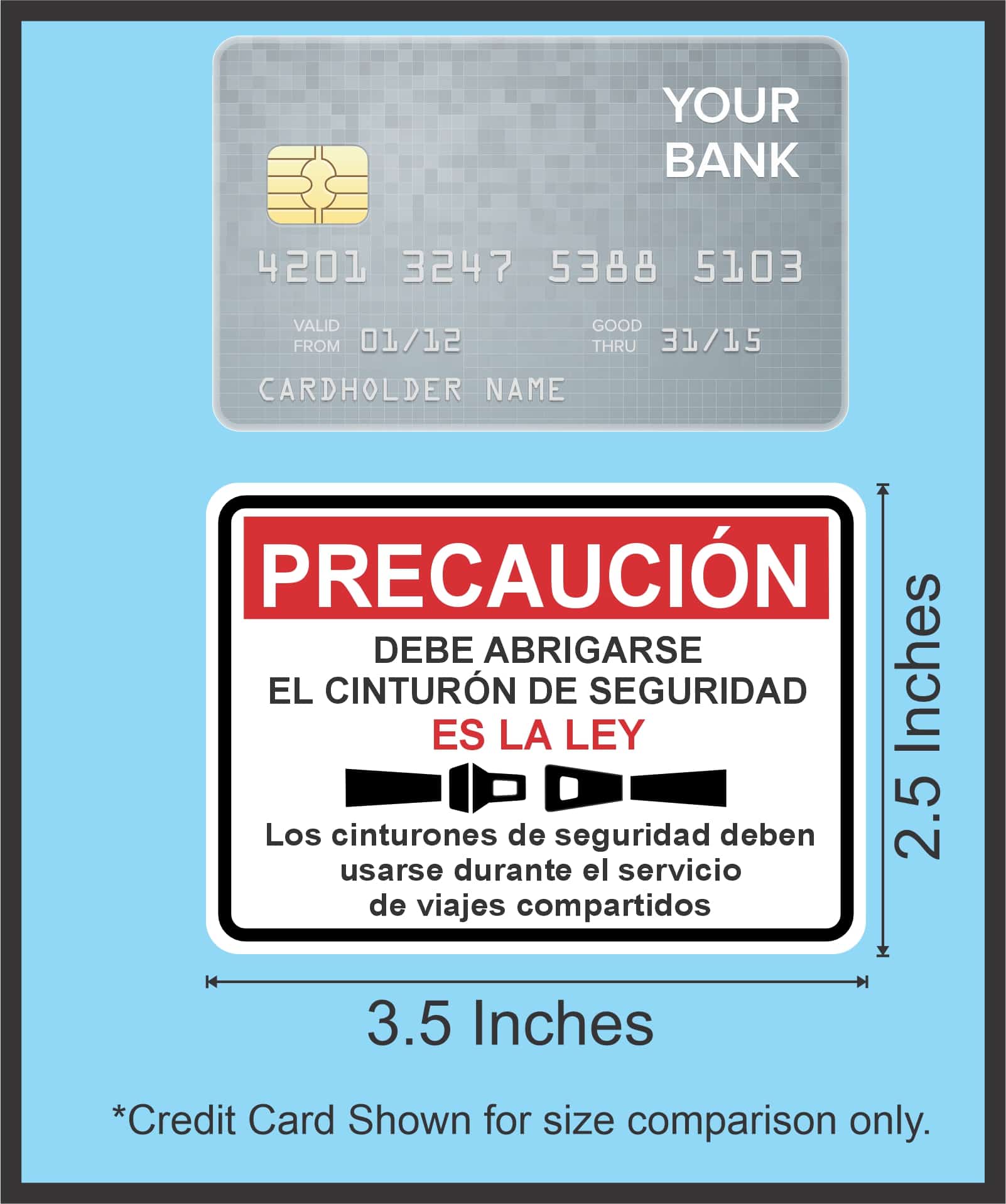 3.5 inches by 2.5 inches (88.9 mm x 63.5 mm) Spanish / English Buckle Up Its the Law Stickers