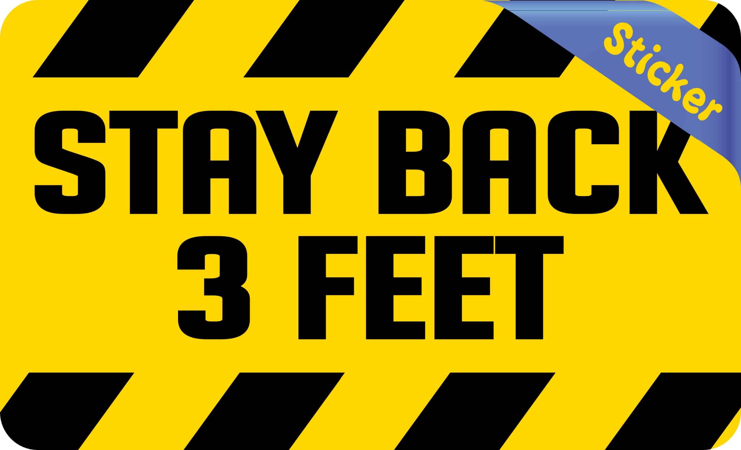 5 inches by 3 inches (127 mm x 76.2 mm) Stay Back 3 Feet Vinyl Sticker Decal