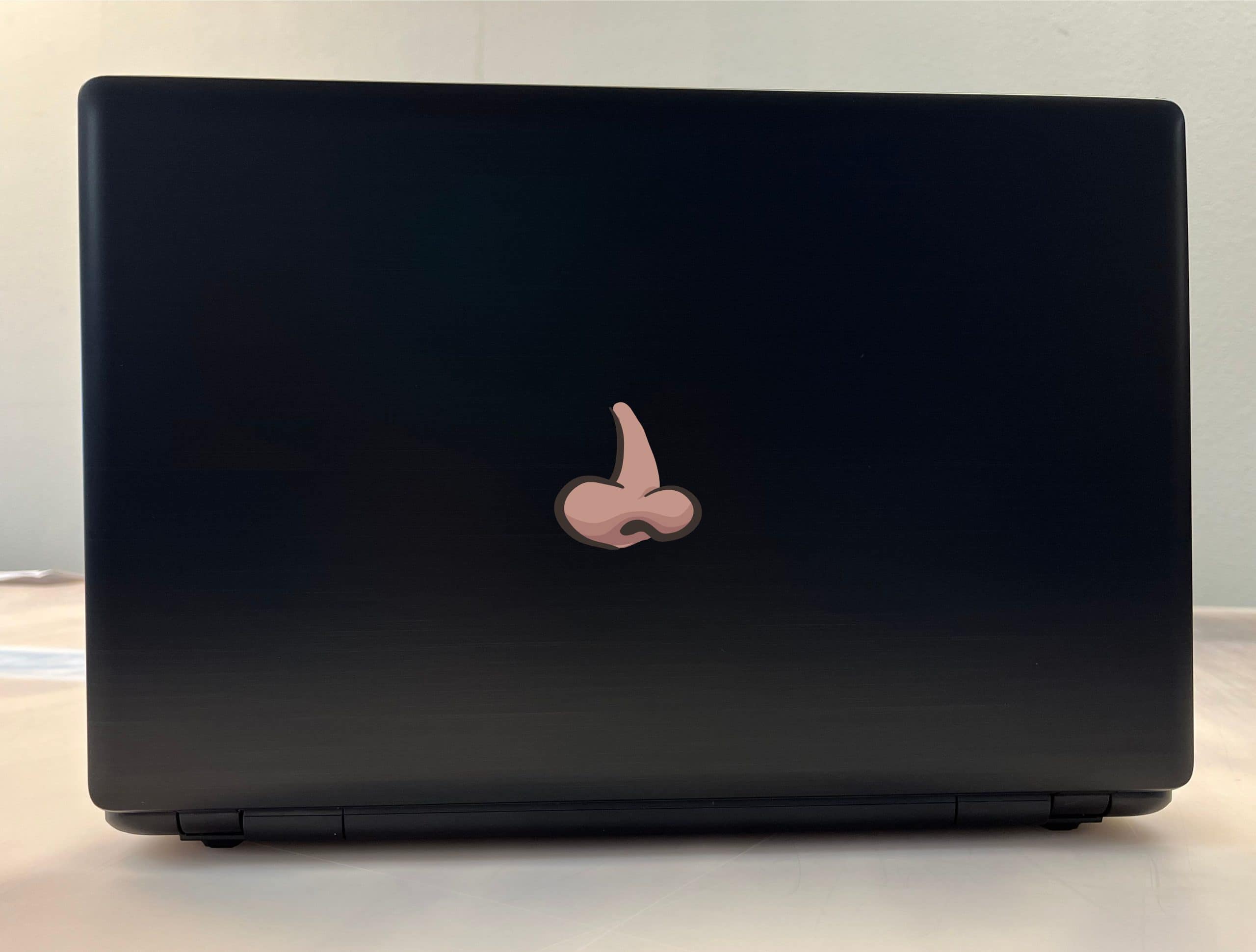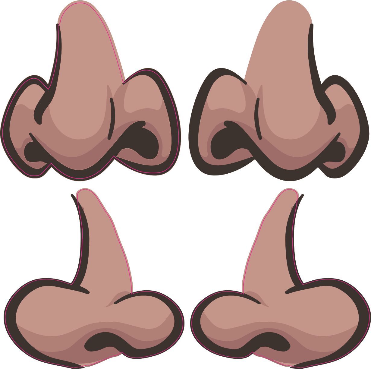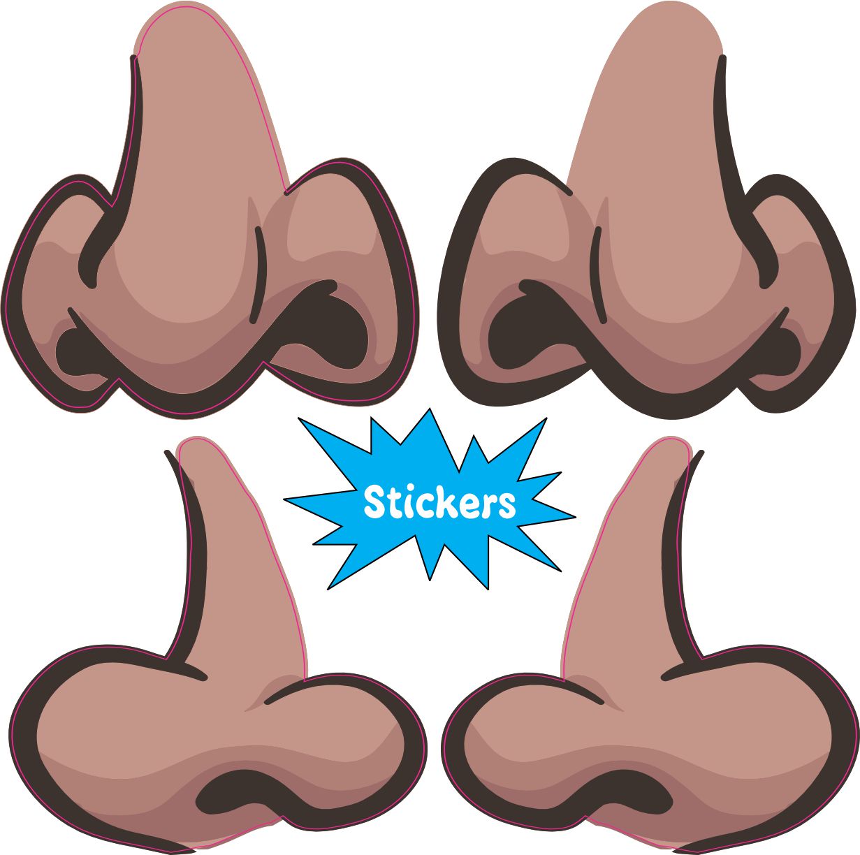 This is 1 sheet of 4 stickers. Each sticker measures 2 inches wide and 2 inches tall. There are two types of nose stickers on this sheet. One type is forward facing, and the other is outward facing with a mirrored image of each. These nose stickers are good for decorating anything that needs a face. They look best when applied to a flat smooth surface. The pink line indicates where the stickers will be cut and will not be printed on the final product.