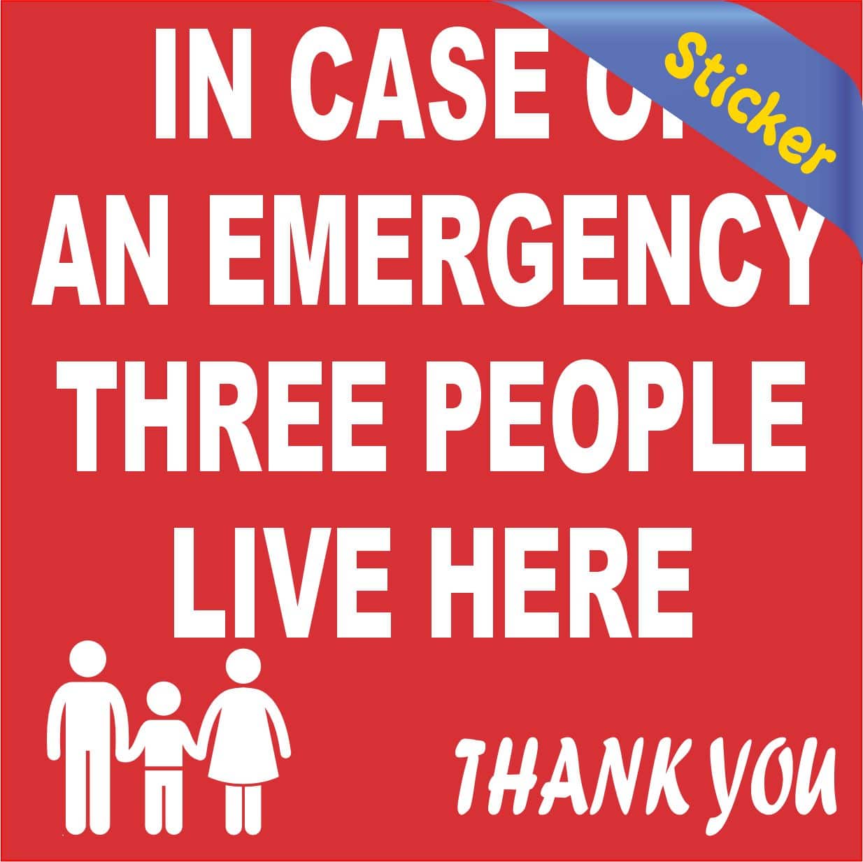 4 inches by 4 inches (101.6 mm x 101.6 mm) Three People Live Here Emergency Vinyl Sticker