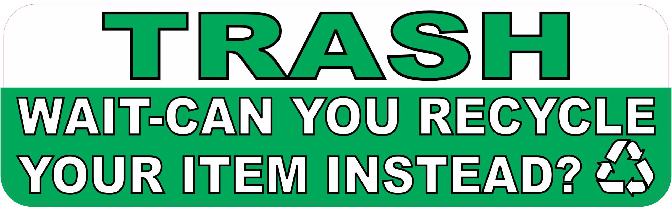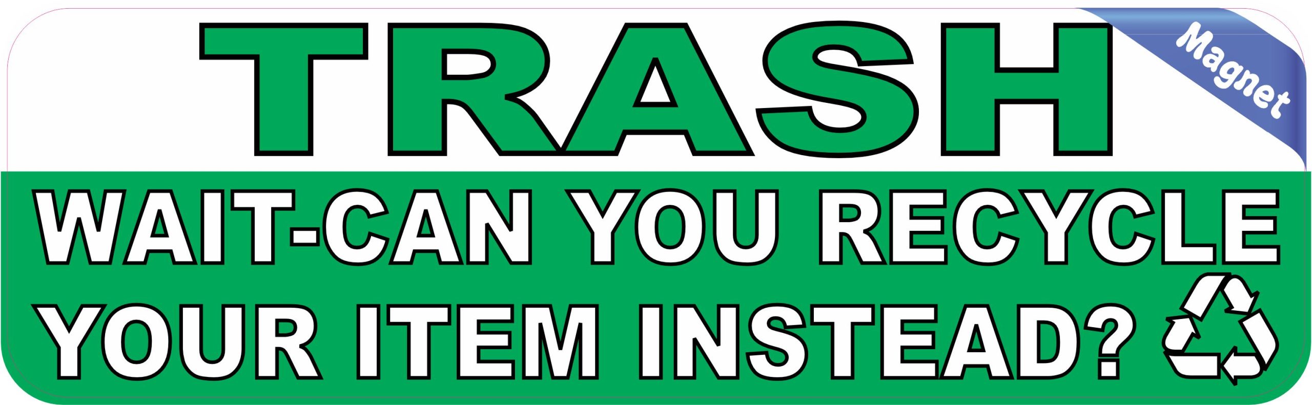 10 Inches by 3 Inches (254 mm x 76.2 mm) Trash Wait Recycle Instead Magnet