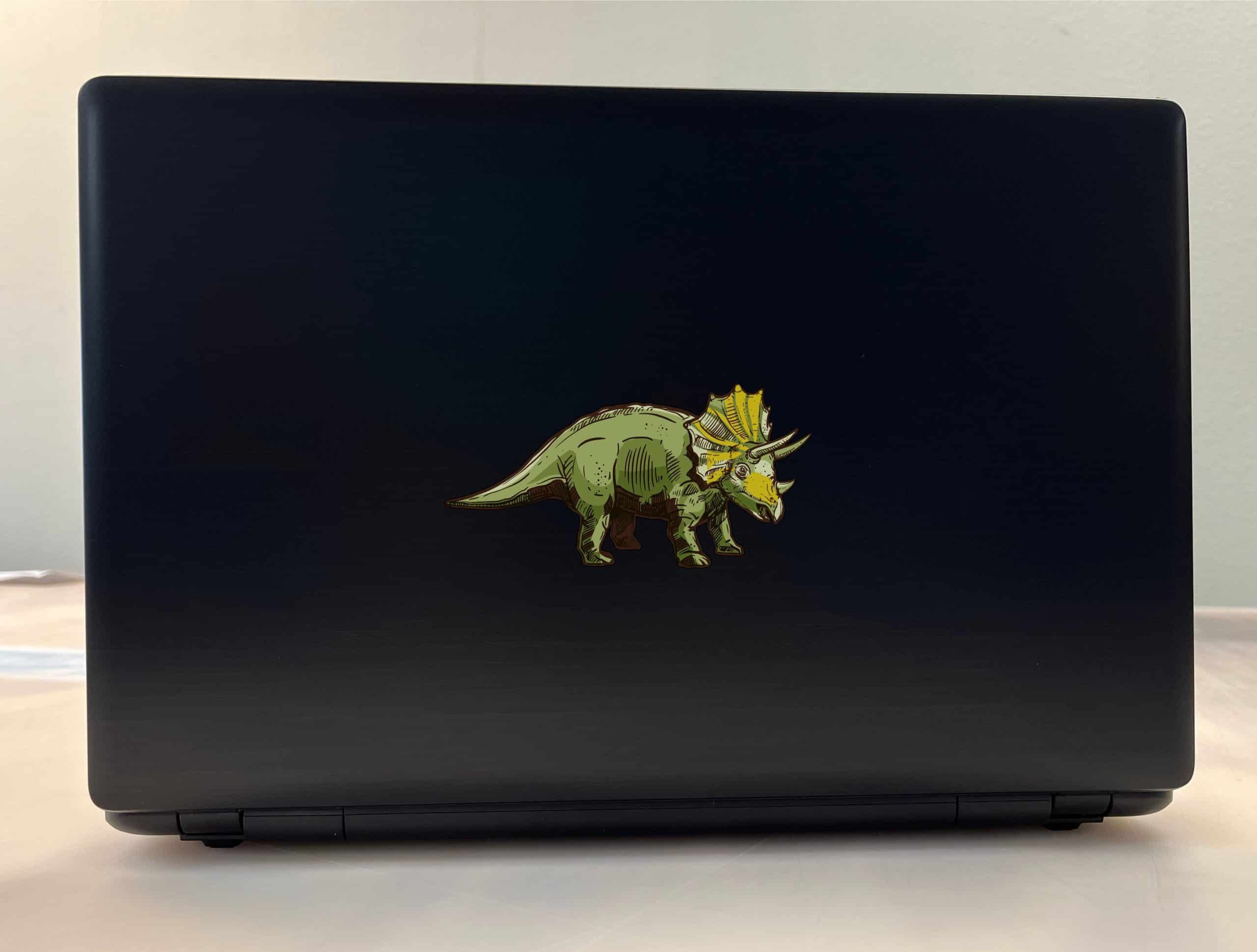 5 inches by 2.5 inches (127 mm x 63.5 mm) Triceratops Green Vinyl Sticker