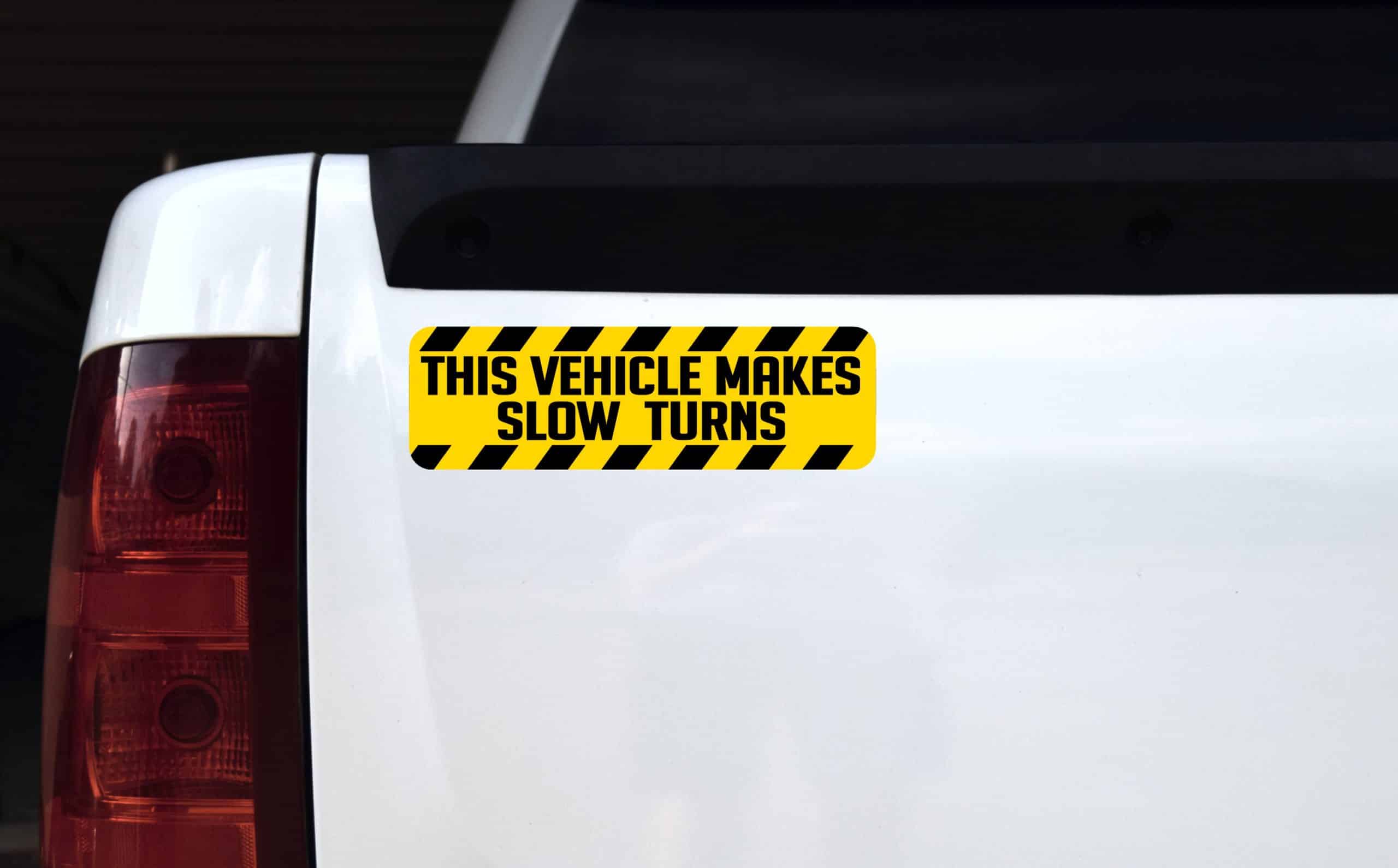 10 inches by 3 inches (254 mm x 76.2 mm) Vehicle Makes Slow Turns Vinyl Sticker