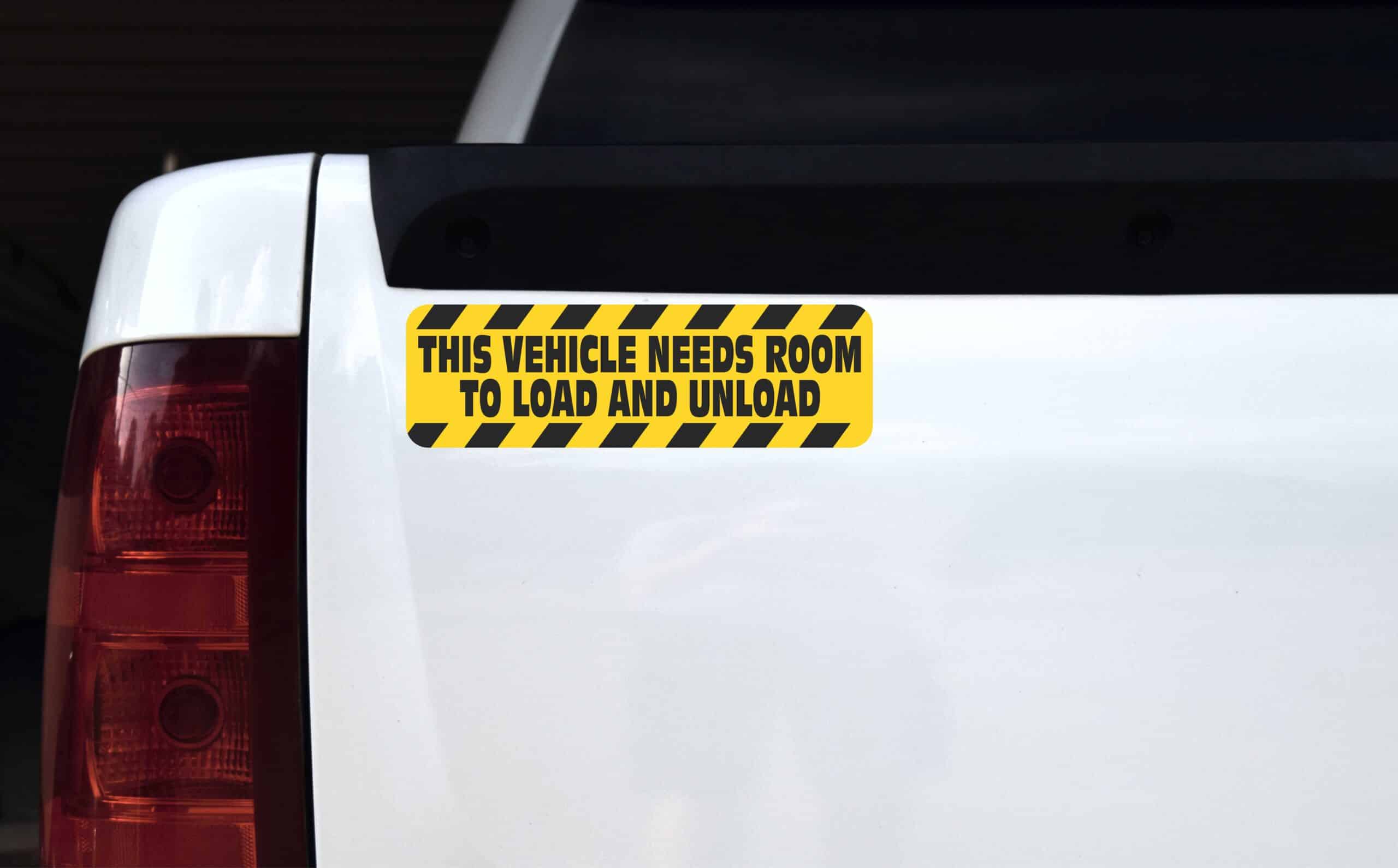 10in x 3in (254mm x 76.2mm) Vehicle Needs Room to Load and Unload Vinyl Sticker