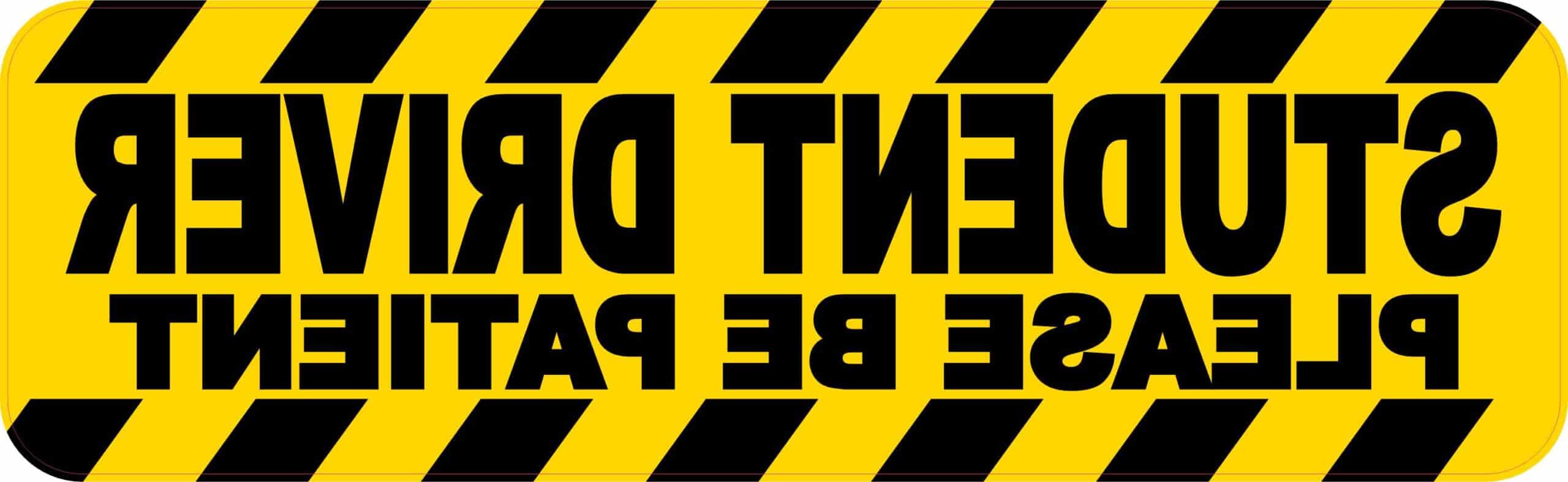 10in x 3in (254mm x 76.2mm) Yellow Reverse Please Be Patient Student Driver Magnet