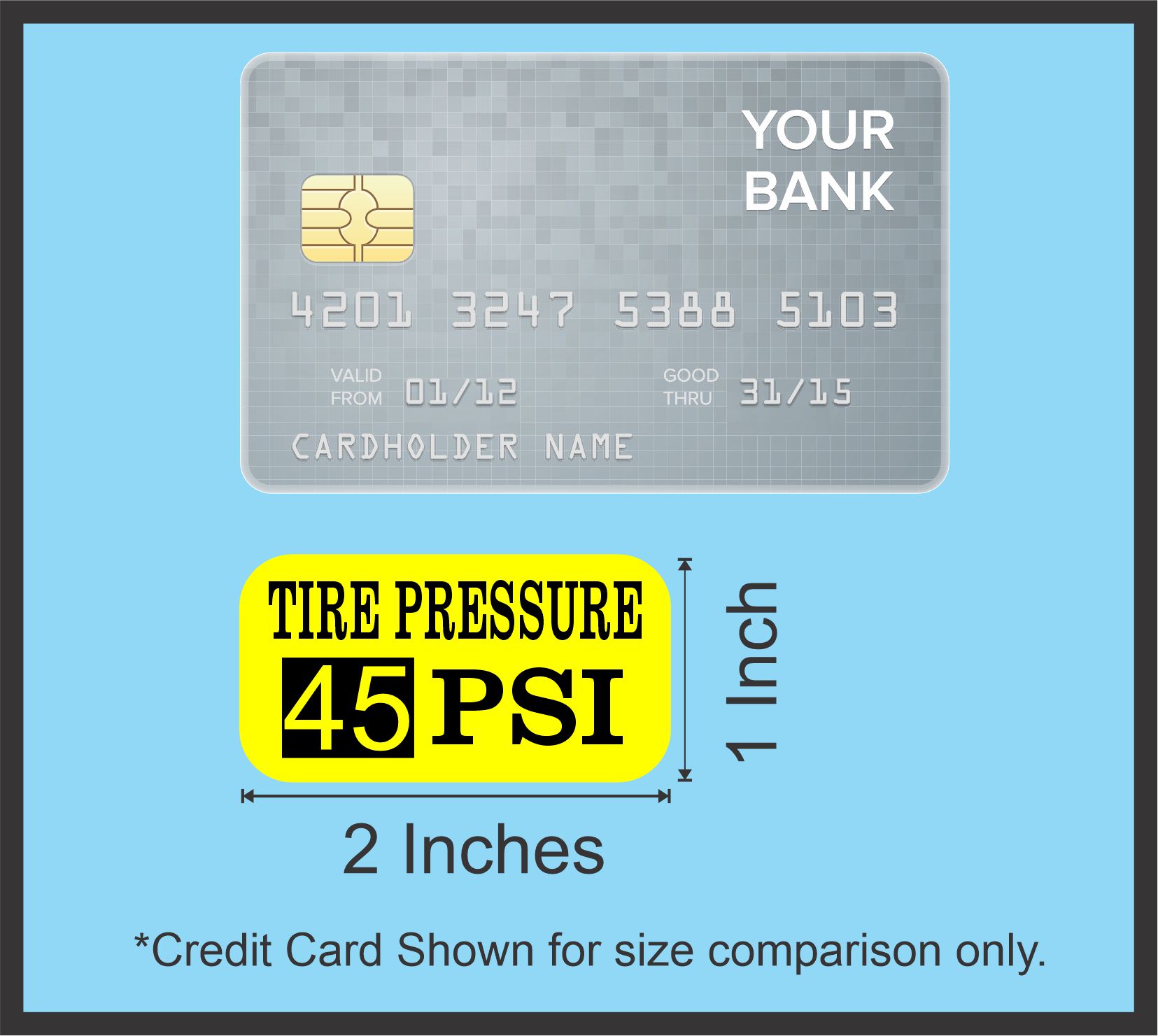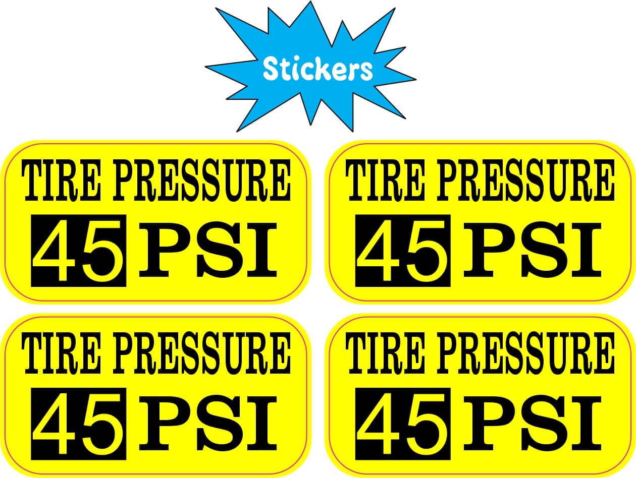 2 inches by 1 inches (50.8 mm x 25.4 mm) Yellow Tire Pressure 45 PSI Vinyl Stickers