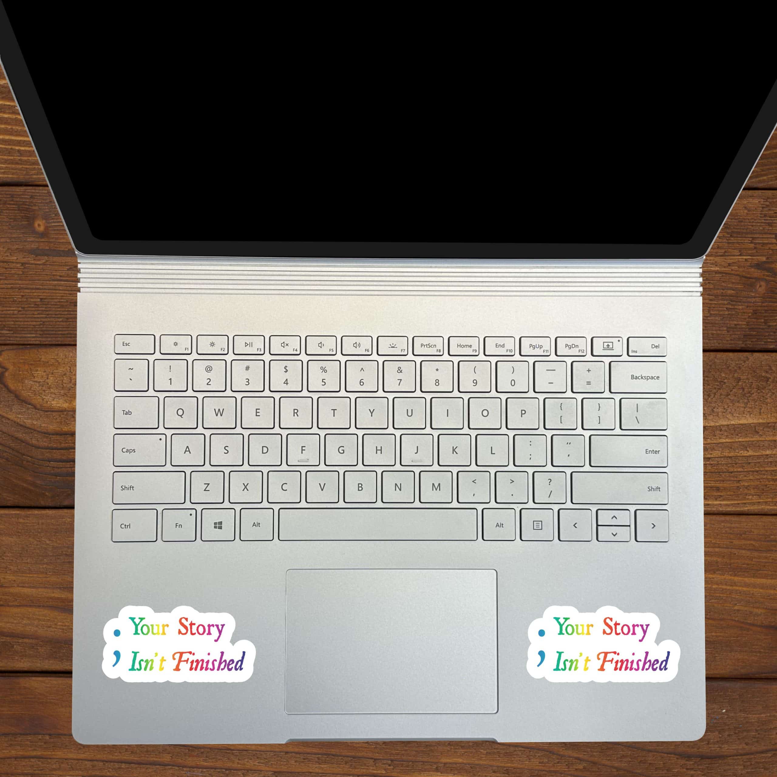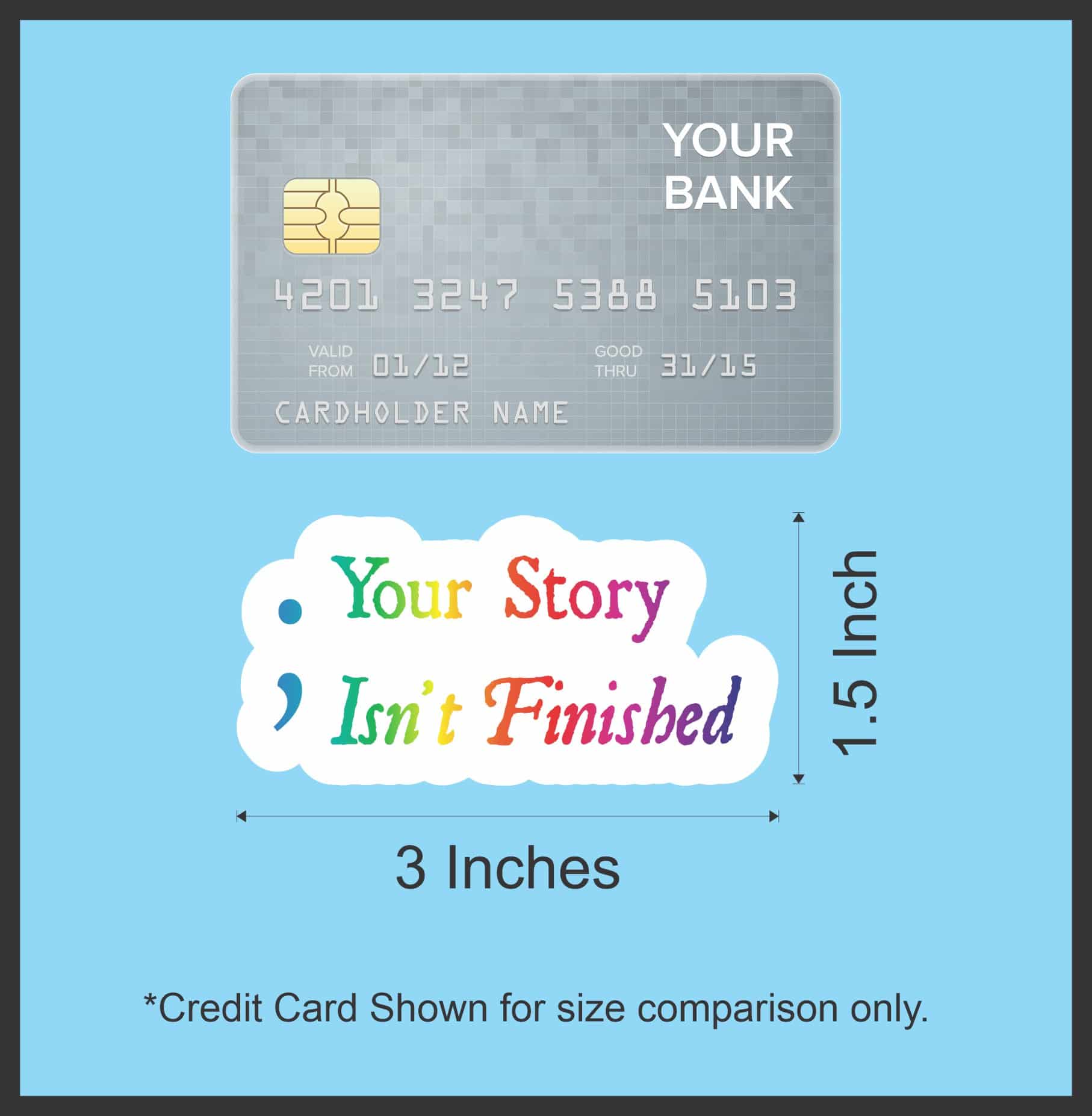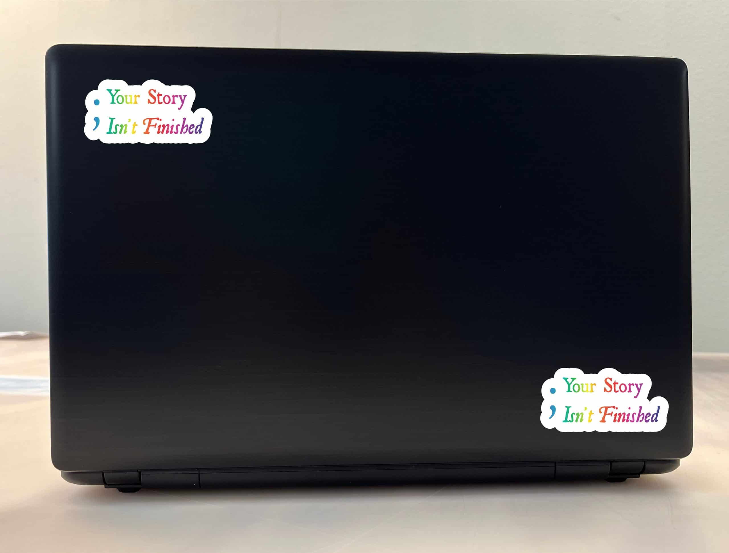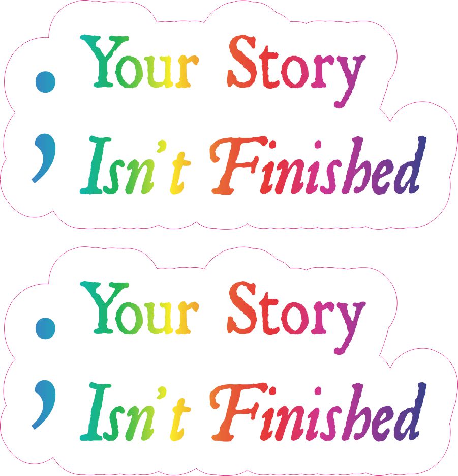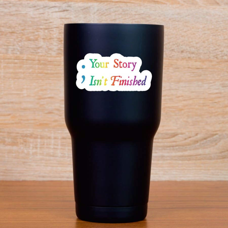 3 inches by 1.5 inches (76.2 mm x 38.1 mm) Your Story Isn’t Finished Vinyl Sticker Sheet