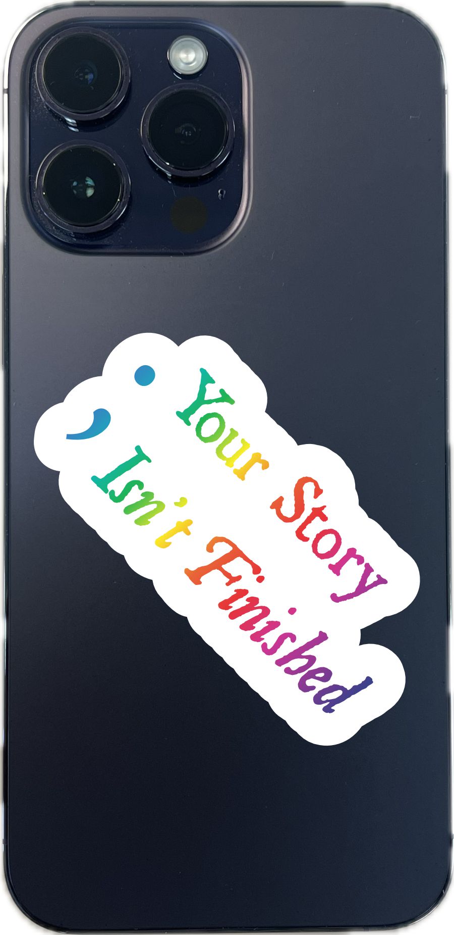 This is 1 sheet of 2 stickers. Each sticker measures 3 inches wide and 1.5 inches tall. These stickers each feature a semicolon and the phase Your Story Isn’t Finished. The text is in a beautiful rainbow gradient. These stickers are a symbol of suicide prevention and mental health awareness. Whether its you or someone you know that needs some encouragement these stickers are perfect. They look best when applied to a flat smooth surface. The pink line indicates where the stickers will be cut and will not be printed on the final product.